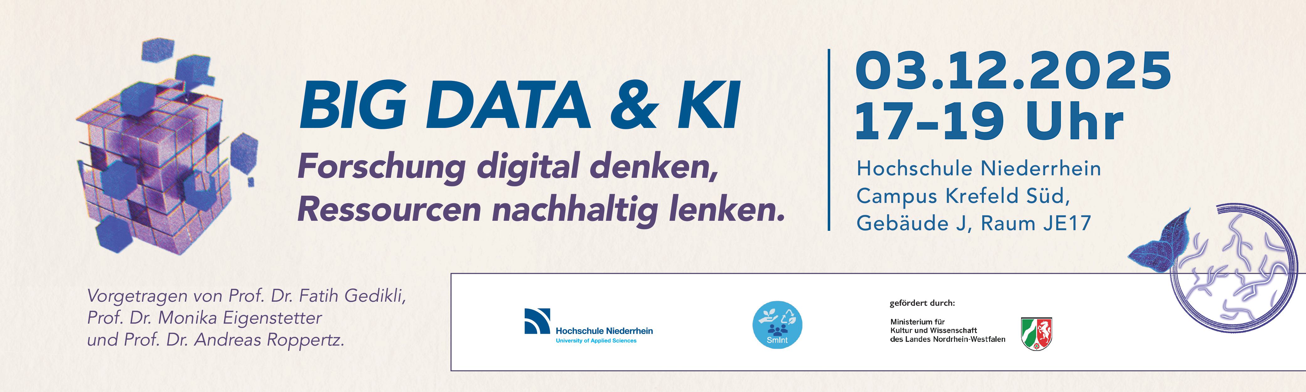 Am 03.12.2025 lädt das Projekt „Smart Interfaces (SmInt)“ der Hochschule Niederrhein herzlich zur Ringvorlesung Teil 2 ein. Die Veranstaltung findet ab 17 Uhr im Gebäude "J", im Raum JE17 statt und kann auch online besucht werden.