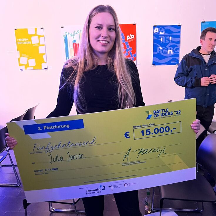 Masterstudentin Julia Janzen gewinnt den 2. Platz beim „Battle of Ideas" mit ihrem App-Konzept „Zusammen Stärker“