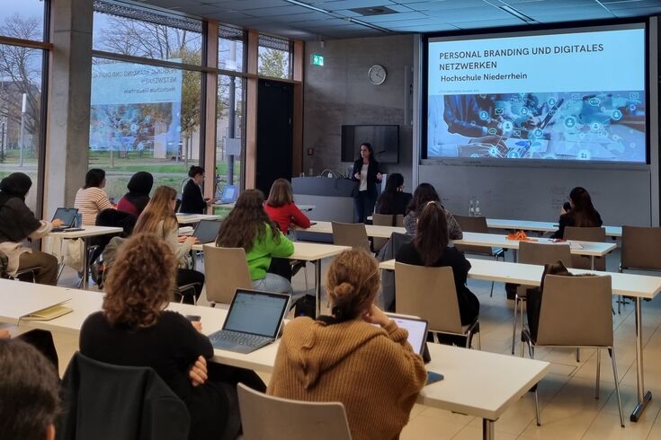 Studentinnen lernen, sich erfolgreich auf LinkedIn zu positionieren und zu vernetzen beim Workshop „Personal Branding und digitales Netzwerken"